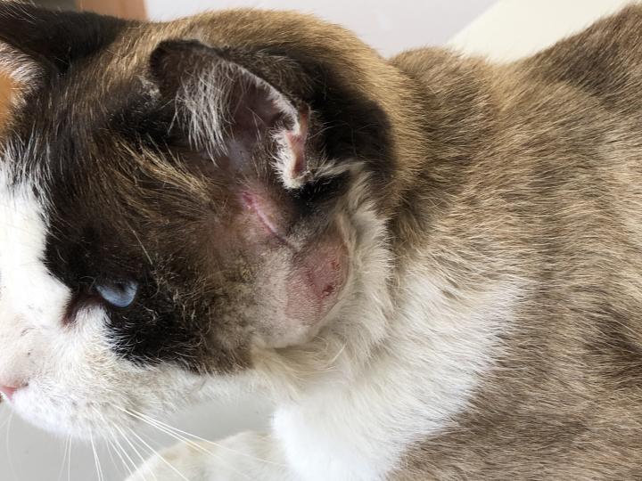 なんて思ってほっぺを触ってたら、傷から血膿がダラダラ〜〜〜やっぱり!