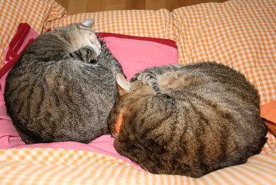 そりゃ ネコだから、ま~~るくなってることは、よくあるけど、ここまで二人揃って‘まん丸’なのは、あんまりない。。