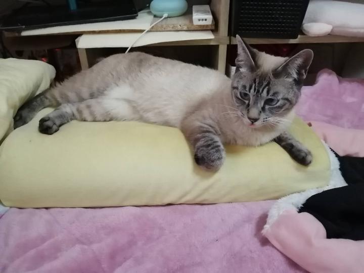 怪しい動きをしていたと思ったら、あたたかブランケットの上にたっぷり・・・