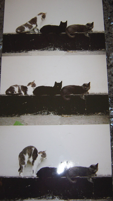 前にも書きましたが、ネコキチオヤジと私の共通の友人君が本職ゲージツ家をやっていまして、夏にドイツ東海のある島にて自転車でお散歩中に、ある農家の敷地にたむろしている3匹のネコを発見して、しばらく観察していたらしいのです。