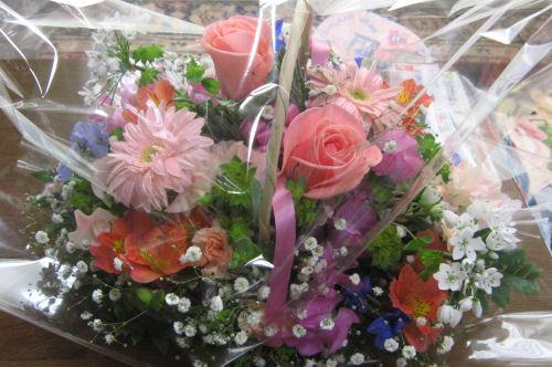 「春らしい感じで」と注文しておいたアレンジメントと