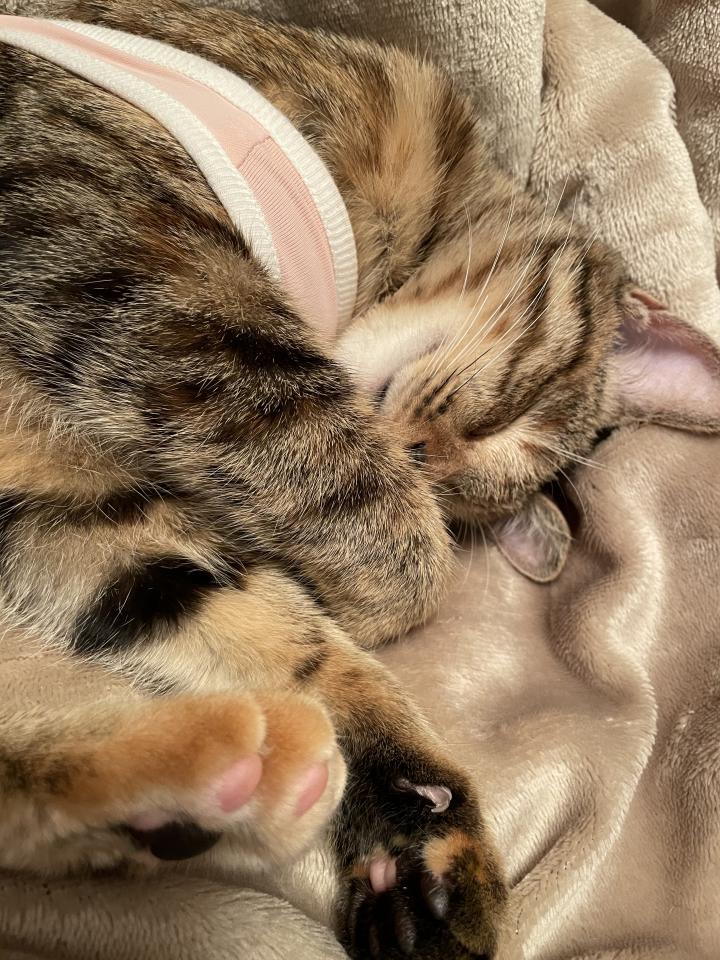 基本的にまだ一日中寝ていますが、起きてる時に飼い主の髪やスウェットの紐にじゃれたり、ちょっと遊びたそうな様子は出てきてホッとしています。