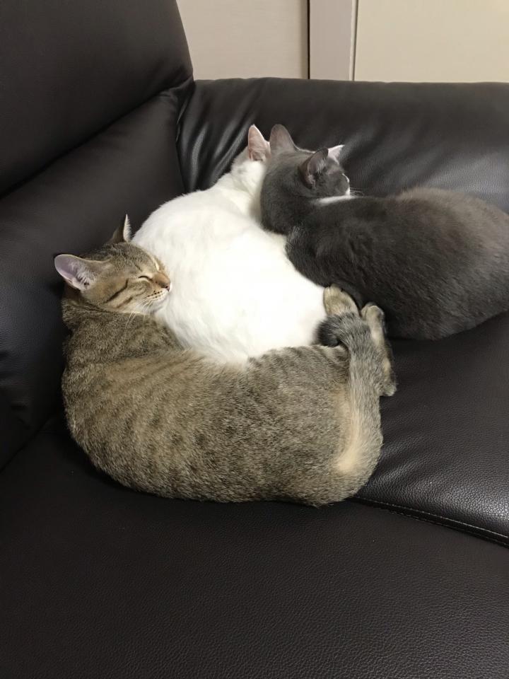 おまけ😊ふくが真菌でゲージ隔離の時の3人です💖