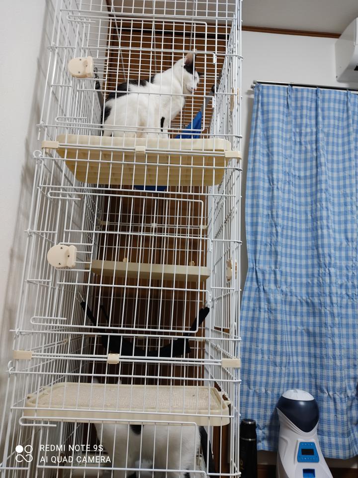 しかも、高い所には全然上がらなかったのに、三段ケージを駆け上りました!