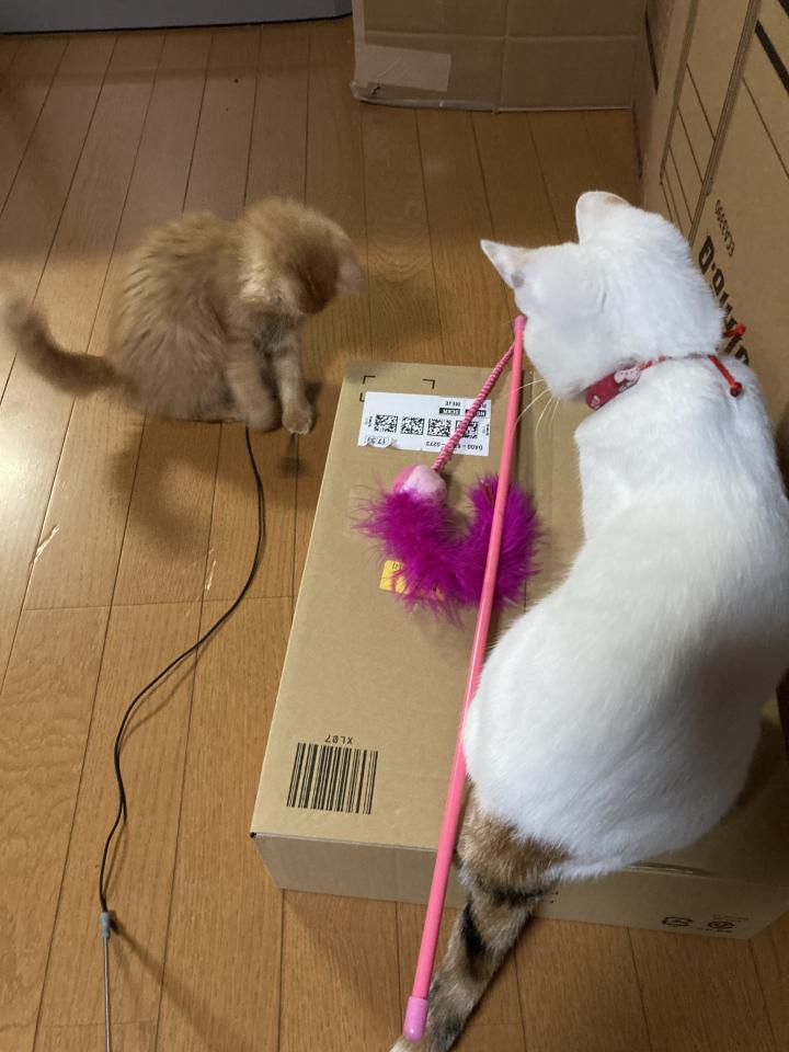 ねこじゃらし、本当は大好きなのに、新入りくんが遊んでいるとクールに眺めているだけでした