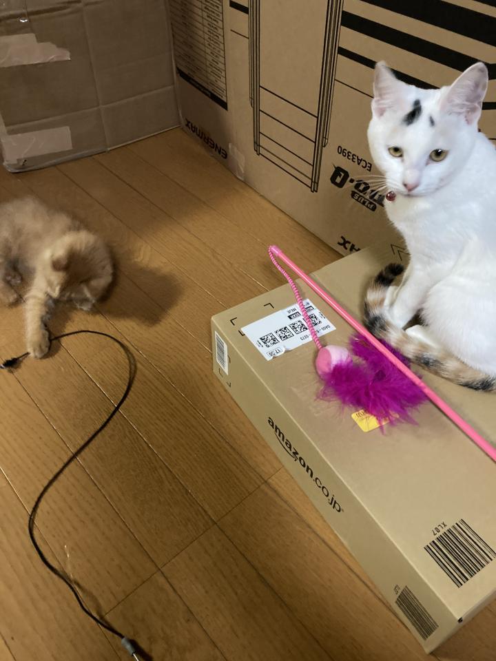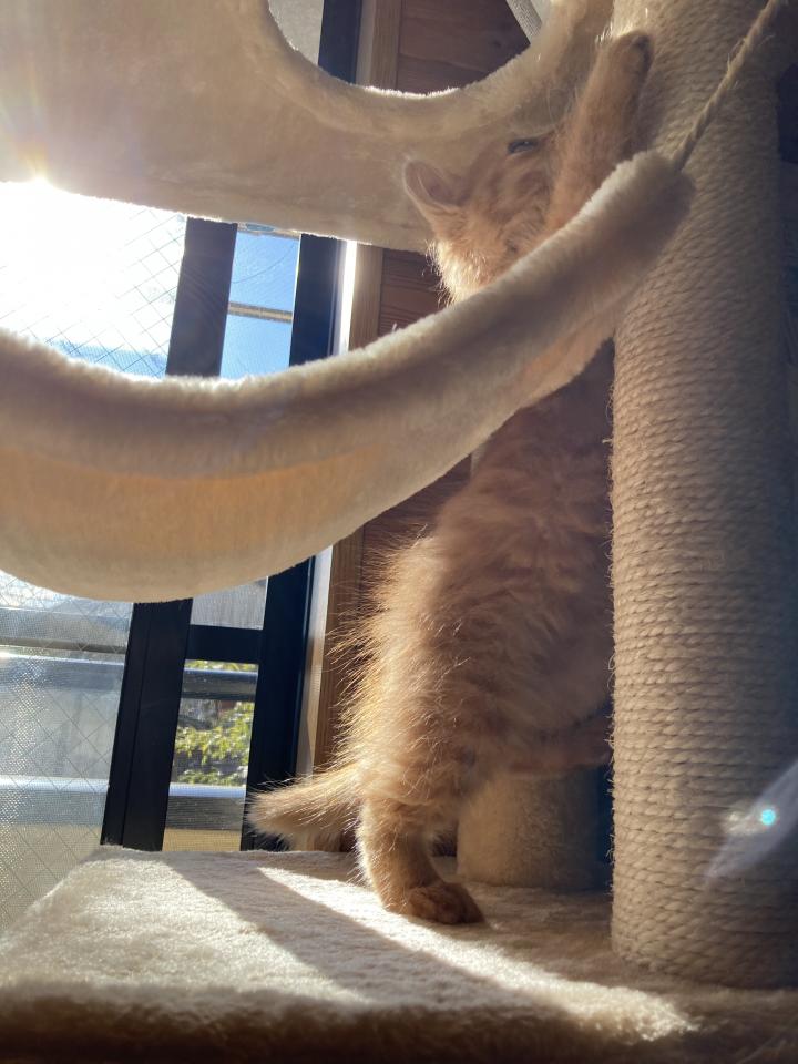 {4}遊ばせてましたが、あっけなく先住ちゃんは頭を使って‥くぐりぬけるようになってしまいました。時間かけてつくったのに敗北感です💦。