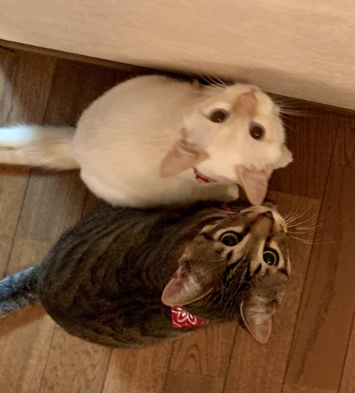 「やかましいっ!バタバタ騒ぐなら、廊下出なさい!!!」と、部屋から2人を追い出し、やれやれと布団に入ると、「なーおなーお、中に入れておくれ。静かにするからー」と鳴いてる。