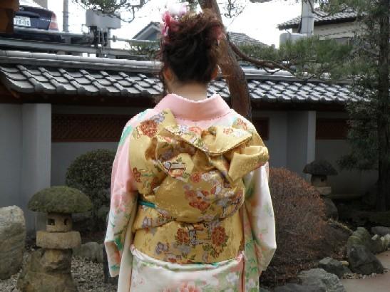 父から貰った帯を締め、父が私に買ってくれた着物を娘が着ました。
