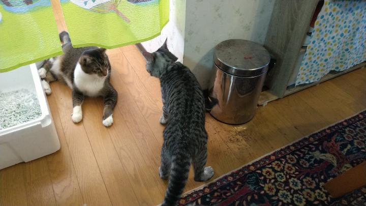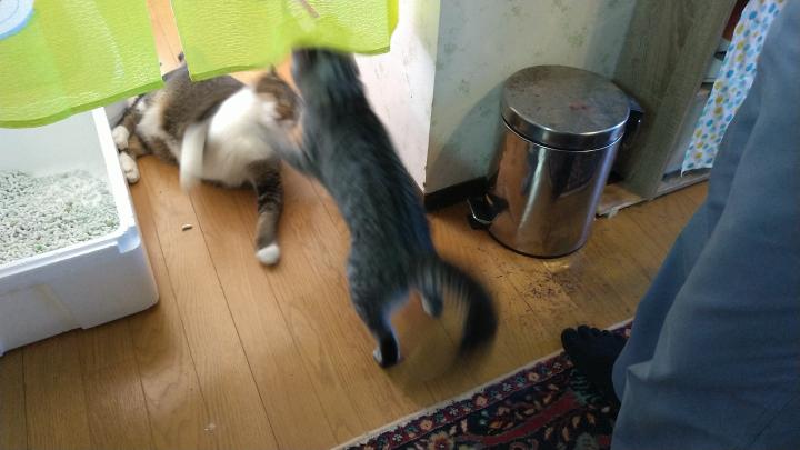 果敢にもお兄ちゃんに挑戦してましたが、この画像のすぐ後、お兄ちゃんに捩じ伏せられてました(笑)