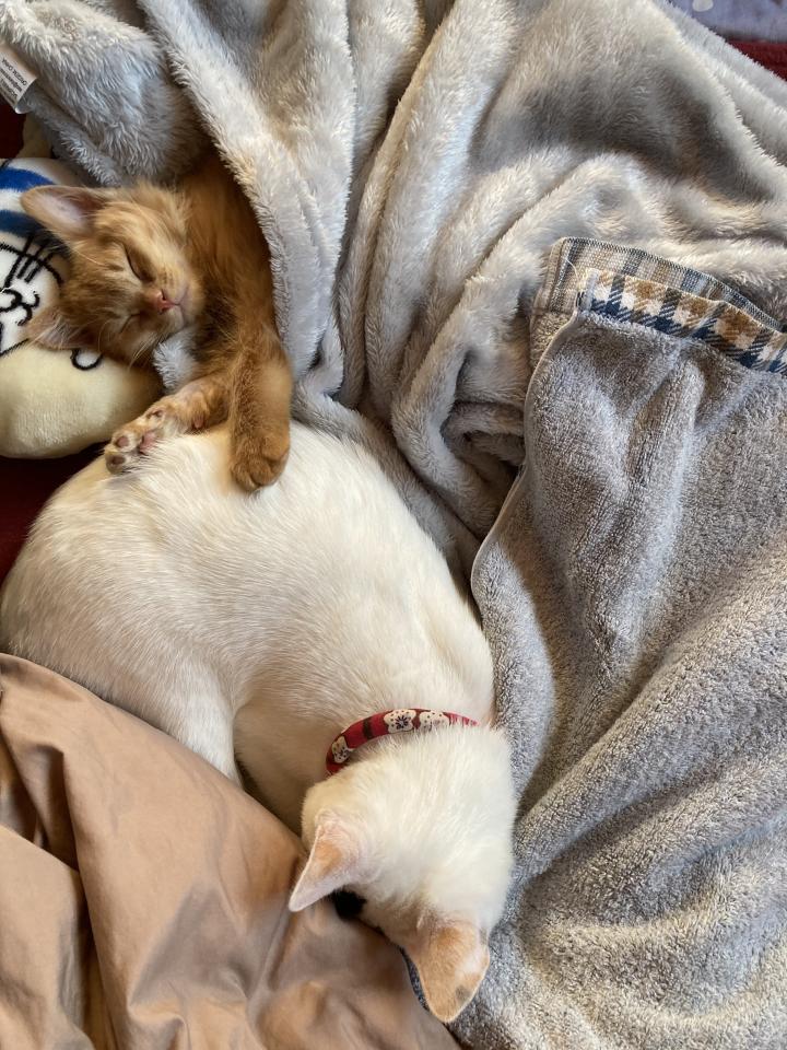 午後のお昼寝はカーサンが横になってたらいつのまにかこんな感じに‥。目覚めてほっこり。こんな姿初めてです。