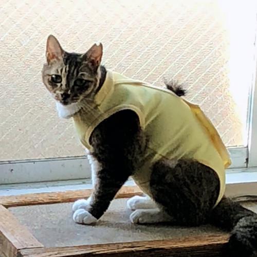 その術後服なんだけど、タイガーもだいぶ着こなせてきてて。