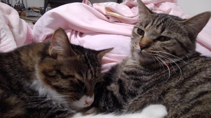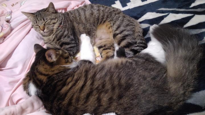 ここあくんがいました✨ 男の子女の子の兄弟を引き取り育てています♪ 男の子は甘えん坊で、猫はお腹触るの嫌がるなんて聞いたことあるけど、二人ともお腹触ってほしそうにして、撫でれば気持ち良さそうにして...