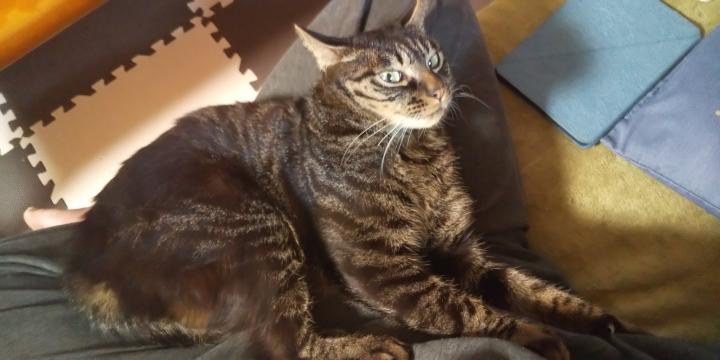 くるみくんは、膝上に載ってきたタイミングで爪切りでした。