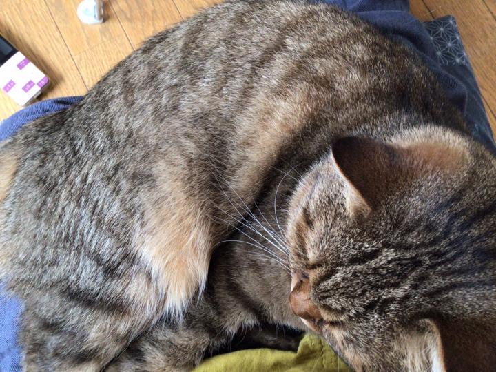 最近はご主人のお膝の上でまったりすることを覚えたにゃ。