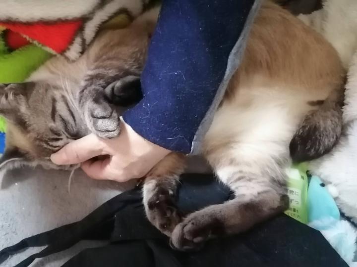 なでてーーーと鳴いたので撫でたら謎の捕獲術で腕をつかまれました(笑)