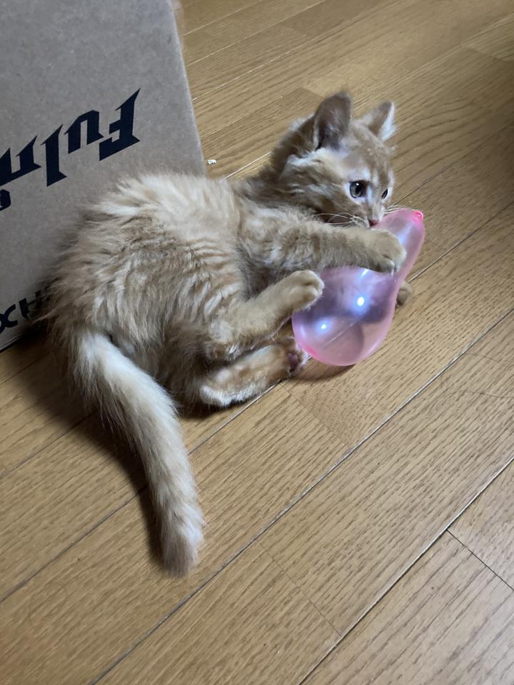 初めてみた風船でひとり遊びを満喫してました。