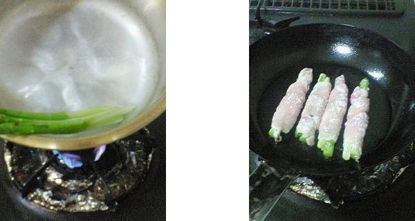 アスパラがすごく硬そうなので少し長めに茹でることに