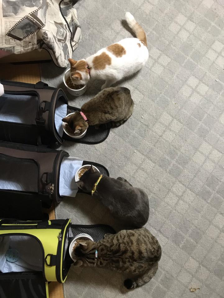 とはいえ4ニャンをキャリーバッグに入れるのに一苦労。