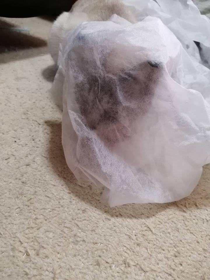 猫部屋で久しぶりの不織布遊びしていて、シャルルが何やら気にしているので