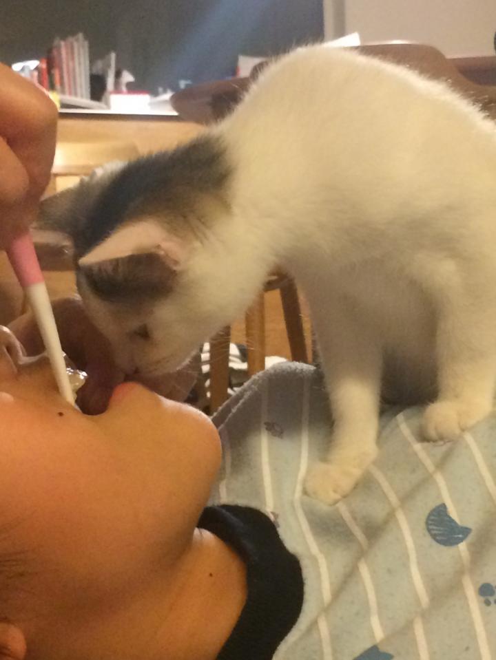 うちの娘が歯科矯正中のため、歯みがき後、私が仕上げみがきをしているのですが、必ずと言っていいほど、ちゅらが見に来ます