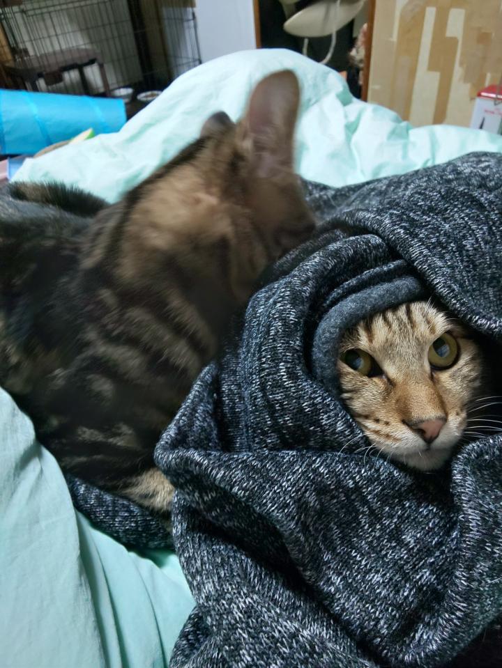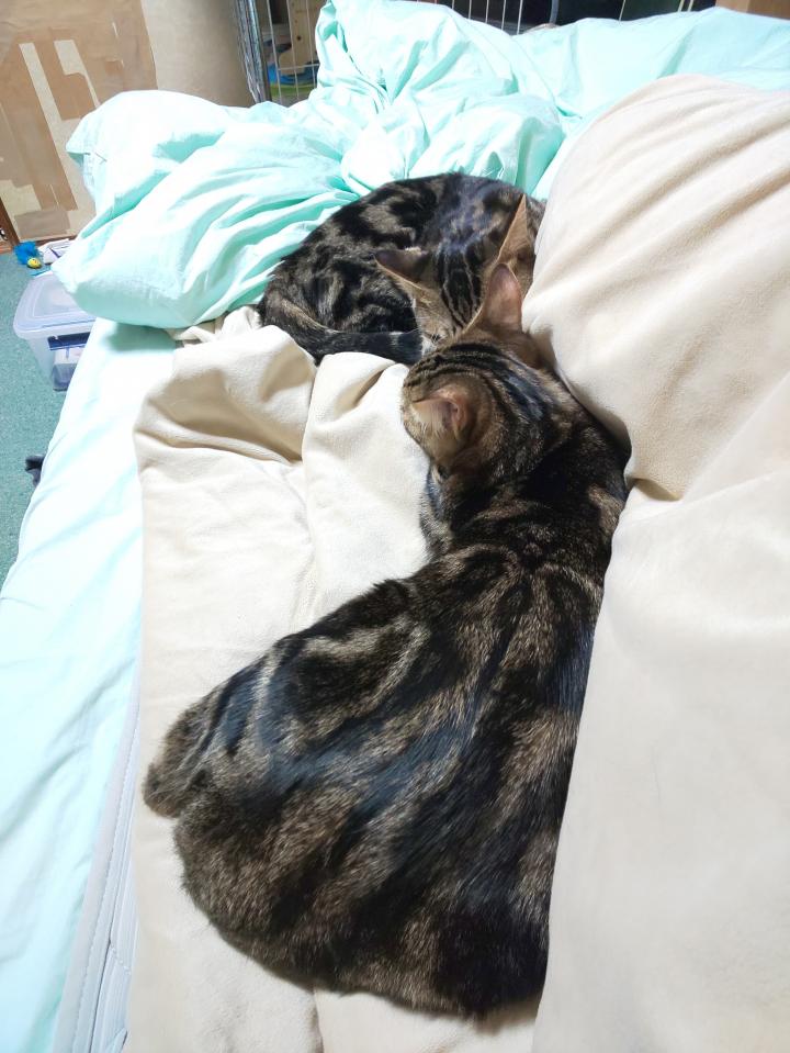 疲れて昼寝してたらクロム君チャム君が添い寝してくれてました☺️