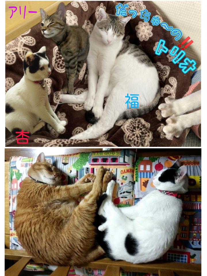 写真を探していたら、ピースと杏もそれに見えるシンメトリーでの【だっちゅう~の寝】も併せてご覧下さい🍀