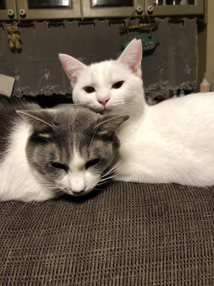 とにかくいつもくっついています。時々じゃれてくるるが泣かされています。