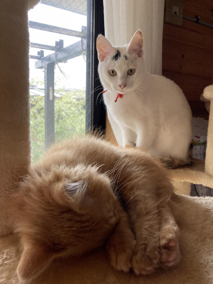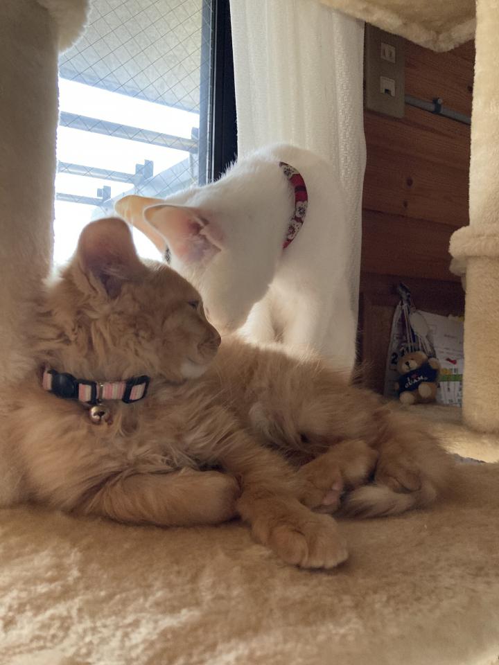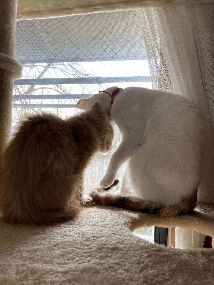 怒りすぎてごめんね🙏とばかりに、優しく毛繕いしてあげたり、寝ているそばで見守っていたり。こんなシーンも見れました。