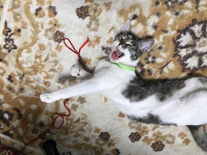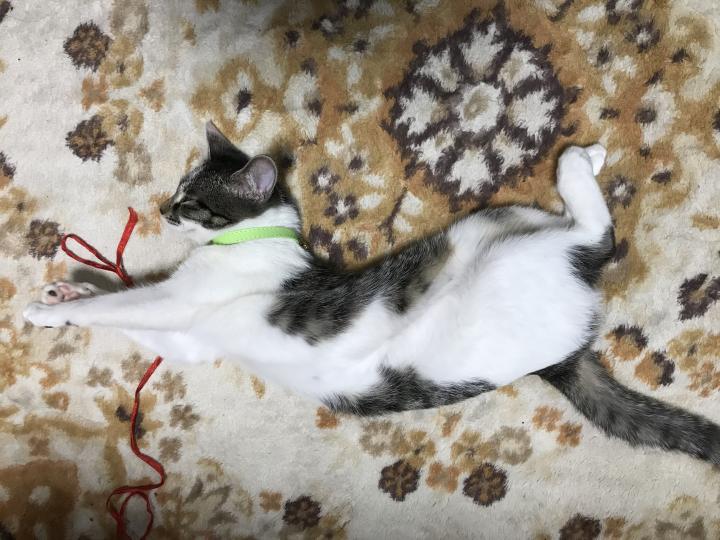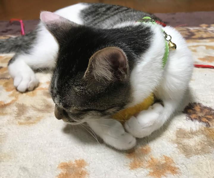 雨の日にホットカーペットでうとうとしていて、「まあ、可愛い」と思っていたらこのポーズ!