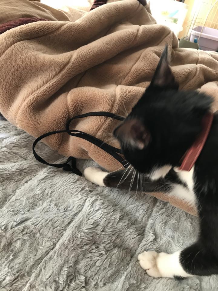 いつも通り黒い紐を咥えて遊んで〜😆