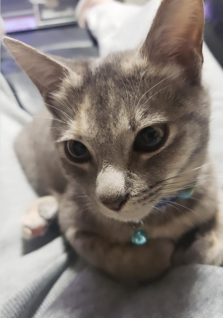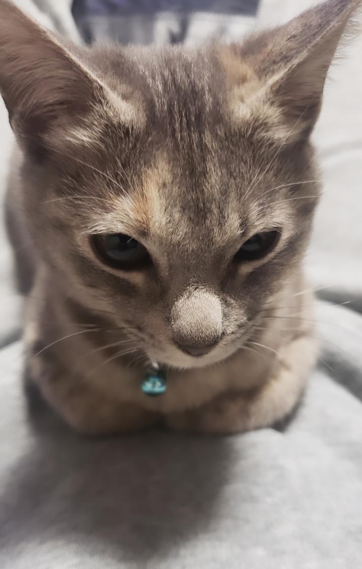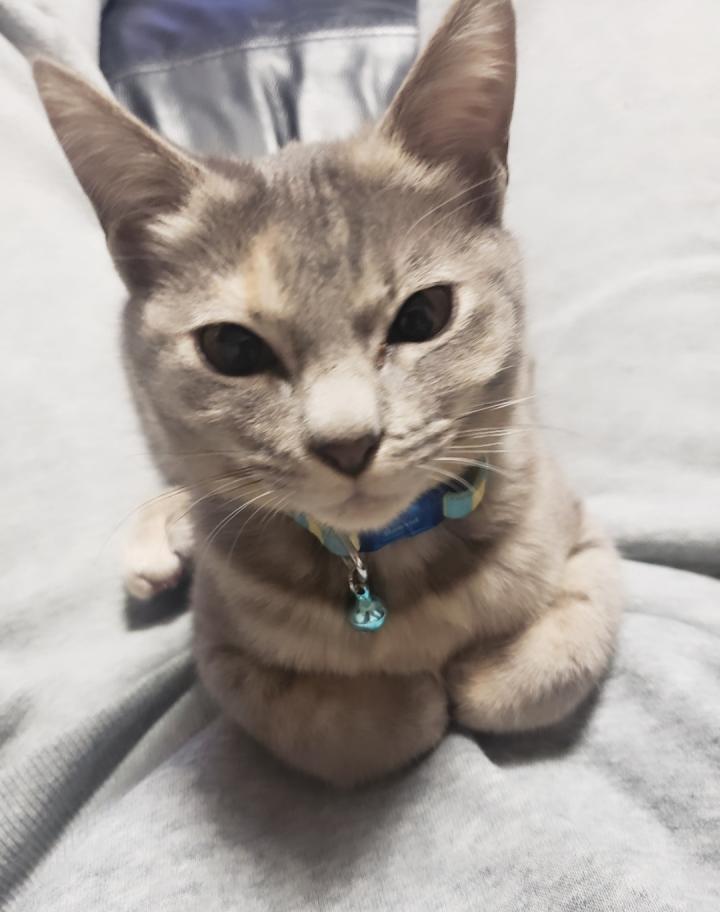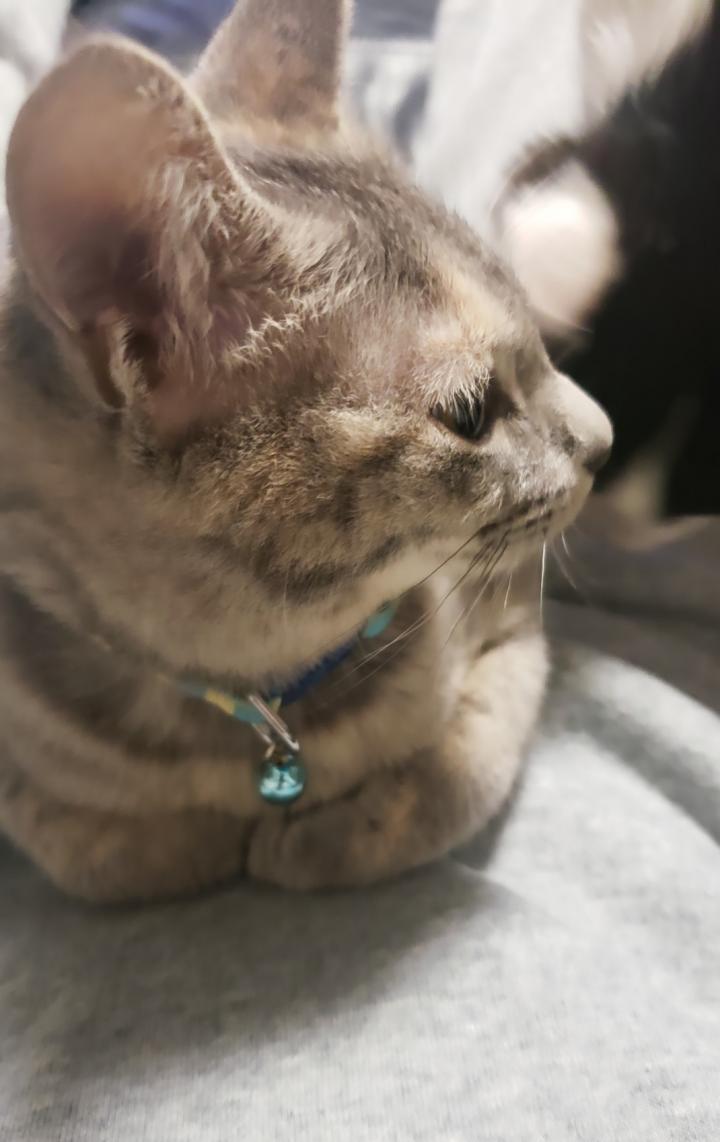 今日はやたら俺のあとについてきてベタベタしてきて、膝の上でペタってしてる。