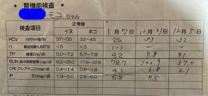 『もこ』はBUN、クレアチニンの両方が高くなるコだったなぁ