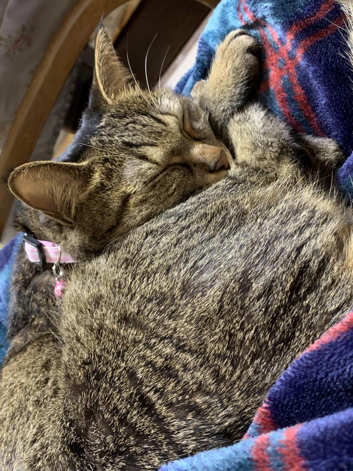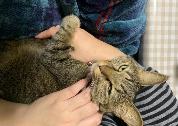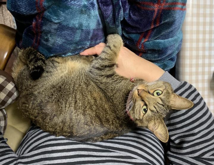 私のご飯が終わる頃、膝に乗ってきて何度か抱っこをねだり喉を鳴らしながらしばらくそのまま、というルーティンです。