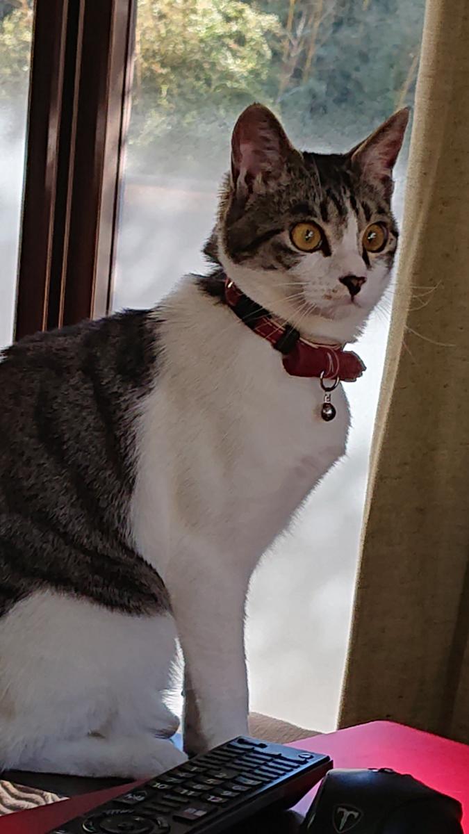 5月15日(木)曇り 今日は天気が悪くなるのだろうか。 少し前まで日がさしていたのだが。 いつものとおり、狭いサッシの隙間から外の様子をうかがうリンちゃんでした。