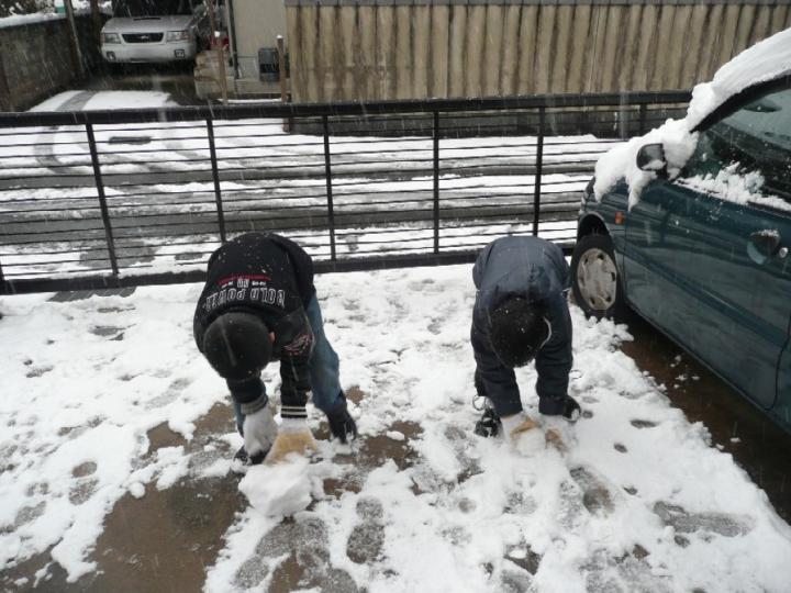泊まりに来ていた長男坊のお友達と雪遊び・゜・。・*:.。.:*・゜