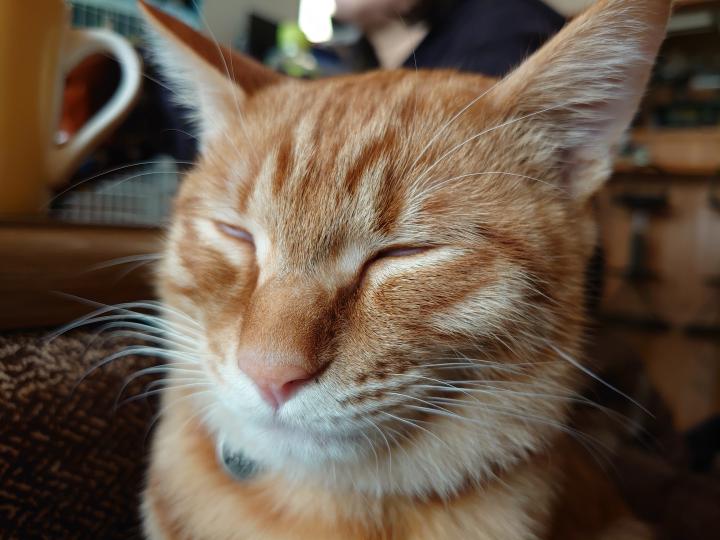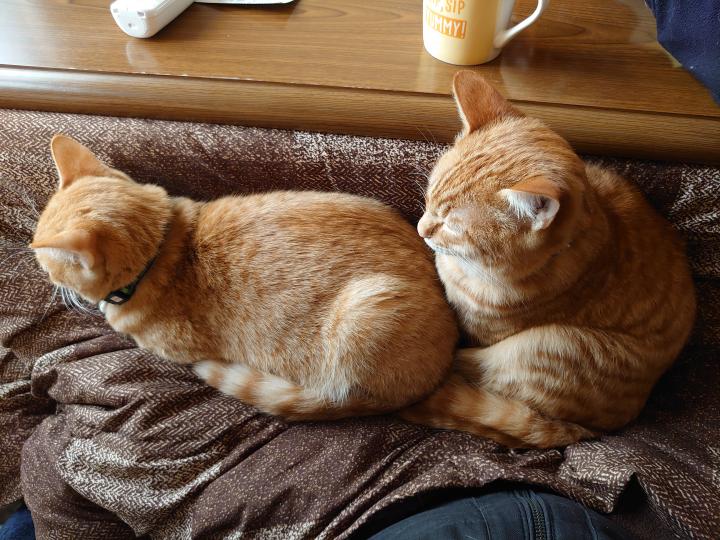 お茶の時間に何ももらえないとわかると、おいらの膝の上で暖をとるのが流行りのようです⁉️