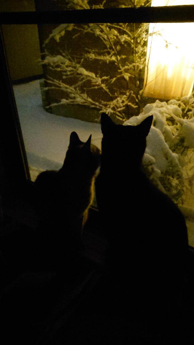 これは豪雪の前、三が日頃の大雪の日、お雪見ランデブーのげんさんとあんちゃん♪