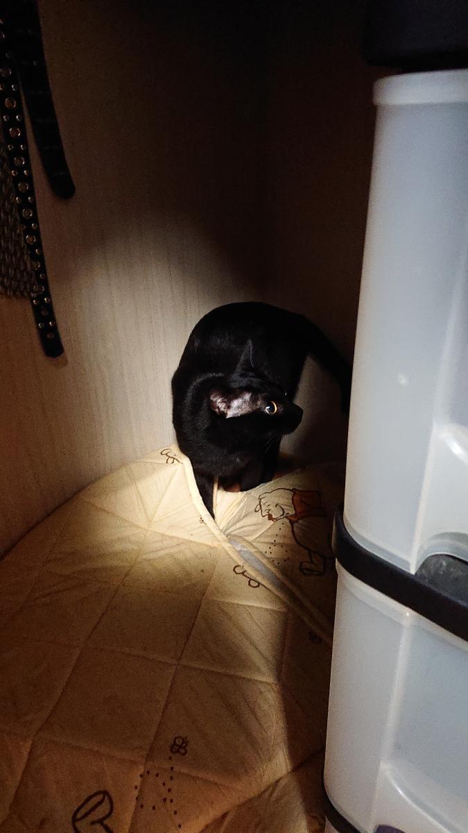 猫たちを入れないようにしているクローゼット。私の目を盗みスルリと入り、出てこーい(`□´)と言われるもシカトの2匹。