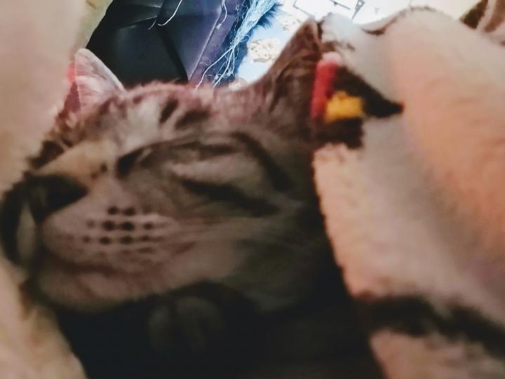 じゃらしにも反応せず、どこかで隠れて寝ているみたいです。