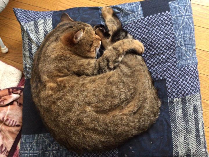 そういえば、実家で座布団を自分用に出したら速攻でたぬきねこが使ってましたので、基本この子はペットのベッドよりも座布団的なものが好きなのかもしれません…シャムとチンチラのMIXなのに。