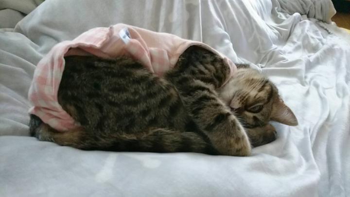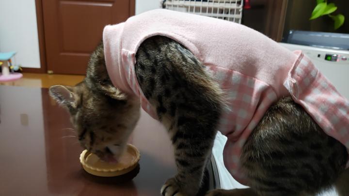 術後着は見た目は可愛いですが、やはり邪魔なようで毎日ガジガジしています😾