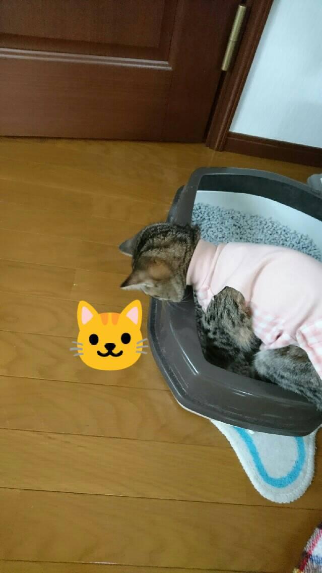 術後着のせいでケージの中ではトイレに入れないので、今はトイレを外に出してます。