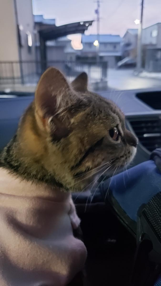 診察券出してから待ち時間は車の中で過ごしました。ちょっとドキドキしたので、短くニャッってなきました🐱