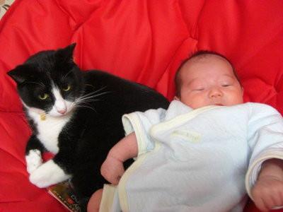 さすが牛君、4キロの息子をがっちり受け止めます。