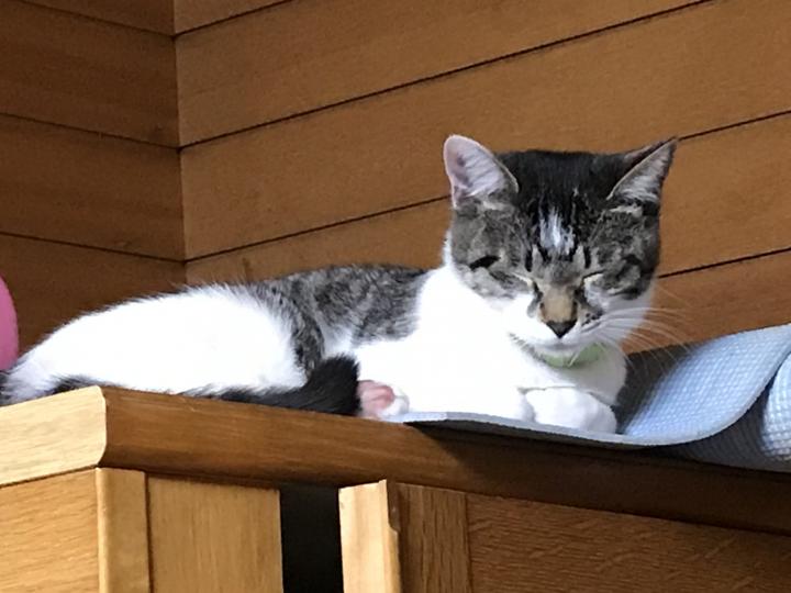 ドライヤーを片づけると、さっさとお気に入りの洋服ダンスの上に飛び乗ります。