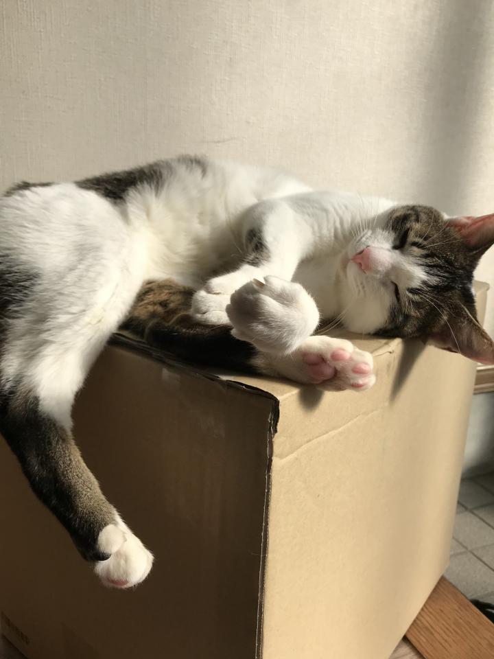 放置していた宅配の段ボールで気持ちよさそうに寝ていてかわいかった( ˊ̱˂˃ˋ̱ )
