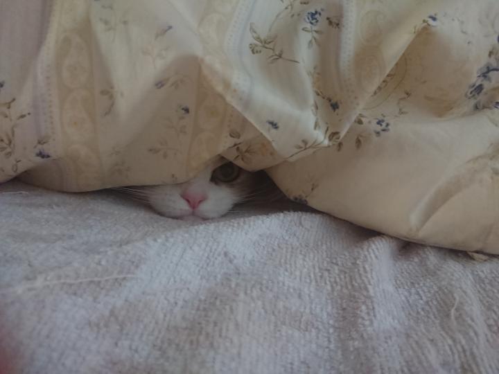 節分👹豆撒きしたらビックリして布団に隠れてしまいました。