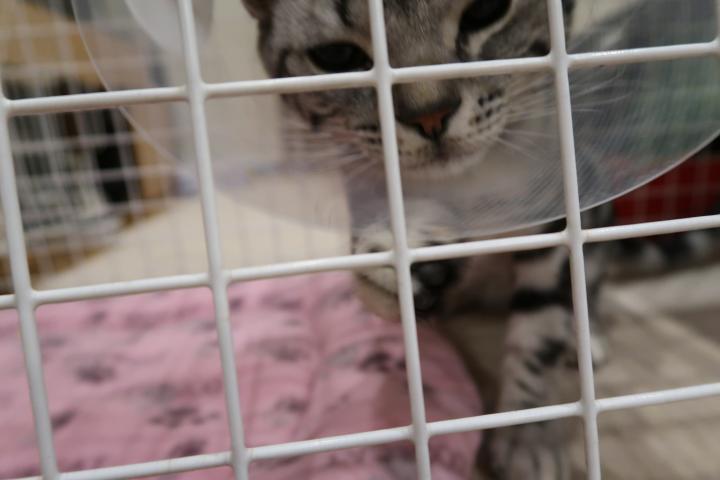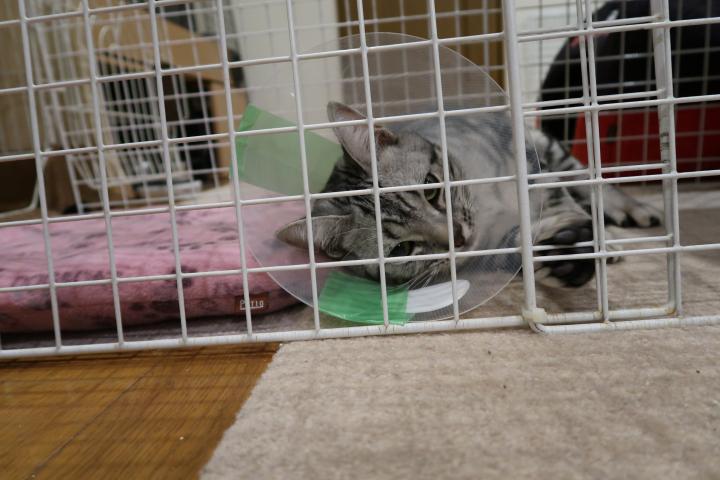 術後も元気すぎで、エリザベスカラーをつけて頭を振り回しています。😆