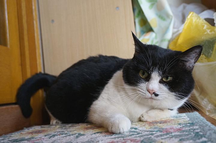 因みに、毛の模様…後頭部は首と繋がっていて真っ黒なチョビさん。