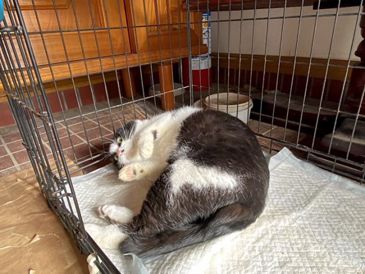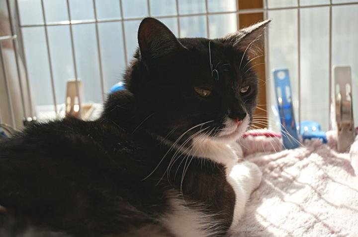 しかし頭をケージの床につけたままこちらを見ているので、一見すると怖い表情に見えてしまう…甘えているのに、可愛い顔に撮られない。